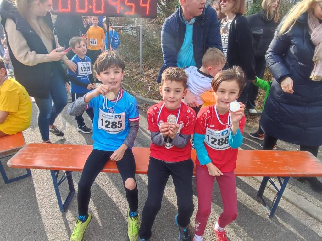 Unsere Jüngsten haben es vorgemacht: der Weinsberger Weibertreulauf ist der ideale Auftakt für die neue Laufsaison nach dem Winter. Durch ihre Teilnahme am Kinderlauf haben Flora, Marie und Ben Röger diese Chance genutzt. Gestartet wurde gegen 10:00 Uhr bei frischen Temperaturen um 8 Grad. Zweimal musste die Runde bei der Weibertreuhalle durchlaufen werden. Wer die erste Hälfte schnell angegangen war, musste bei der zweiten Hälfte viel Durchhaltevermögen beweisen. Alle unsere 3 Lauftalente habe sich durchgebissen und wurde nach 660 Metern im Ziel mit einer Finisher-Medaille belohnt. Wir gratulieren zu dieser Leistung und sind mächtig stolz auf euch.